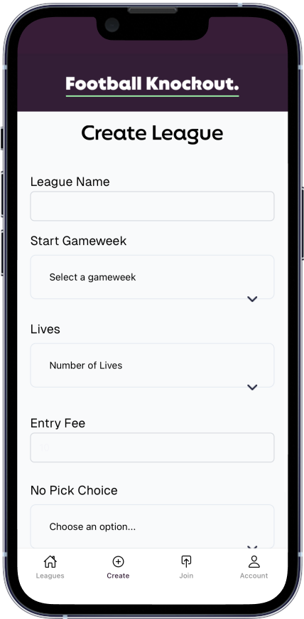 Create or join a league with friends, colleagues and team mates