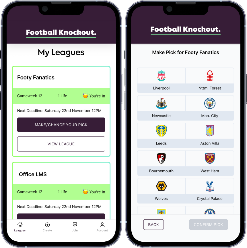 Create and join a league, make your picks, and track who’s still standing all in one place. No spreadsheets, no hassle, just pure competition.